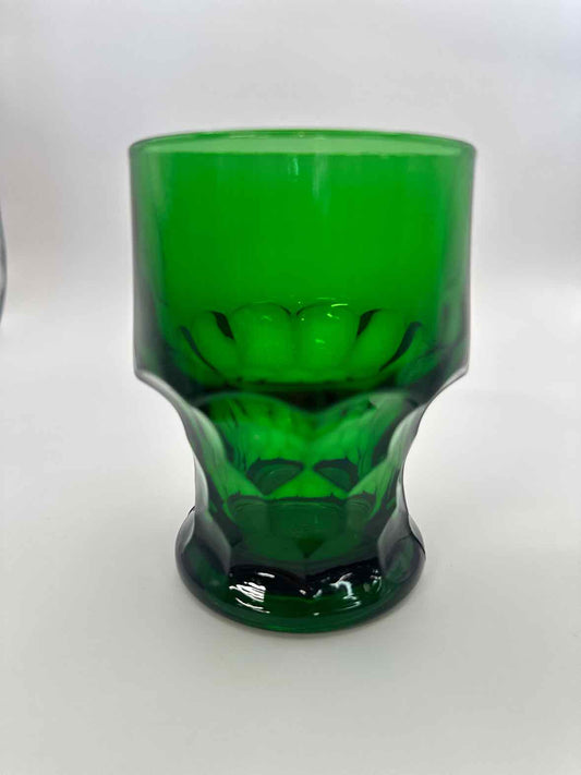 Vintage Georgian Hunter Emerald Green Mid Century Honeycomb Thumbprint Tumbler set of 5