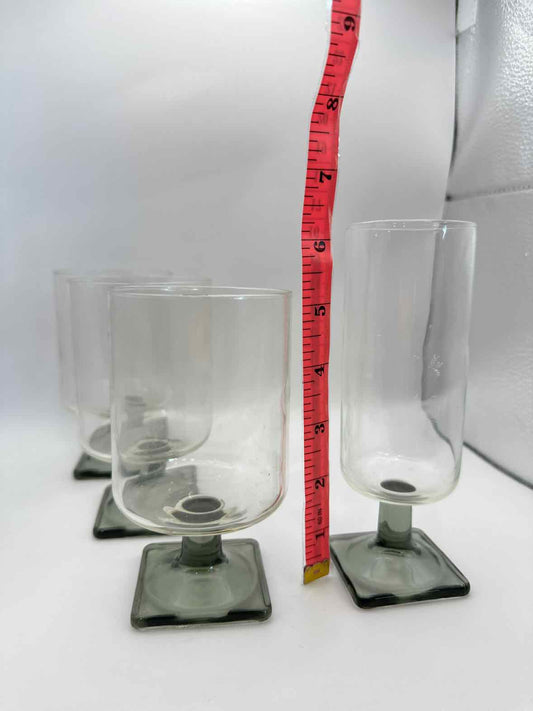 MCM Georg Jensen for Rosenthal Crystal Berlin/ Linear smoke pattern Grey stemmed glassware set of 3